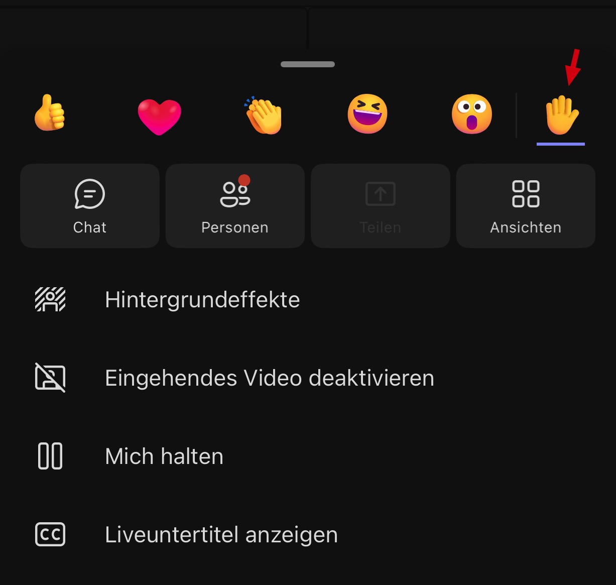 - Bei Teilnahme mit dem Smartphone oder Tablet findest du die Funktion über das Drei-Punkte-Menü: